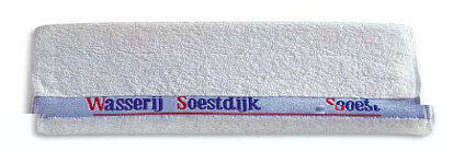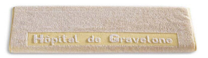 Einwebung 5*: Uni-Zwirnfrottier vollfarbig stückgefärbt, Farbe nach Wahl (Bitte aussuchen) mit Hoch-Tief-Einwebung: Namen und/oder Namen; Material: 100% Baumwolle, kochfest Mindestmenge: mindestens 100 Stück pro Größe und Farbe und Gesamtgewicht der Bestellung muss 70 kg betragen Preise unten für helle Farben (pastell), mittlere Farben + 5%, dunkle Farben: + 10 % Zuschlag