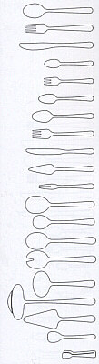 Saucenlöffel 172 mm Suppenschöpfer 270 mm Tortenheber 222 mm Zuckerlöffel 139 mm Zuckerstange 110 mm