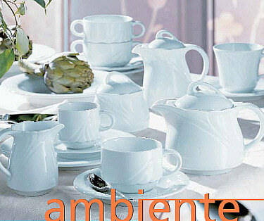 Alle Tassen und Saucieren werden komplett mit Untertassen und Untertellern geliefert. Die Buttersauciere wird ohne Unterteller angeboten.